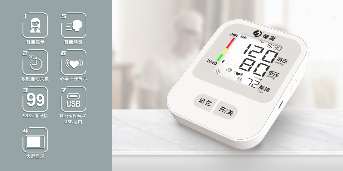 智能芯片,多重技術升級, 99組記憶數據精確掌握血壓變化
